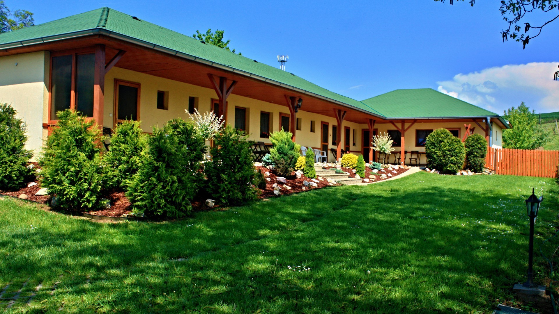 Apartmány sú rozdelené na dennú a nočnú časť, samostatná kúpeľňa so sprchou a wc, kuchynský kút, rýchlovarná kanvica, mikrovlnka, tv-sat, internetová prípojka, samostatný vchod, terasa s nábytkom, záhradný gril, posedenie, hojdačky, šmýkalky, preliezačky, parkovanie.