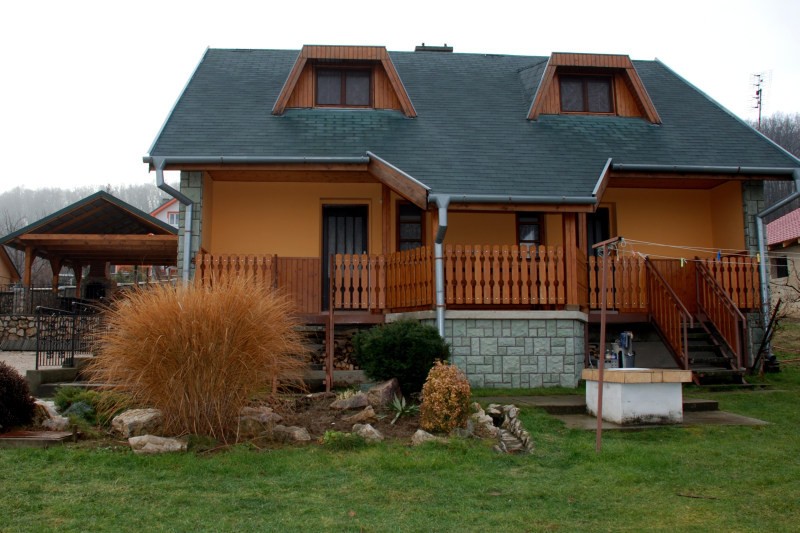 Vonkajšie priestory pozostávajú z terasy s posedením a výhľadom na celú obec, termálne kúpalisko a blízke okolie. Možnosť parkovania je na vybudovanom parkovisku v oplotenom areály chaty. Za chatou sa nachádza záhradné posedenie s murovaným krbom a ohniskom s možnosťou grilovania a opekania jedál. Súčasťou je i menší trávnik s pieskoviskom.